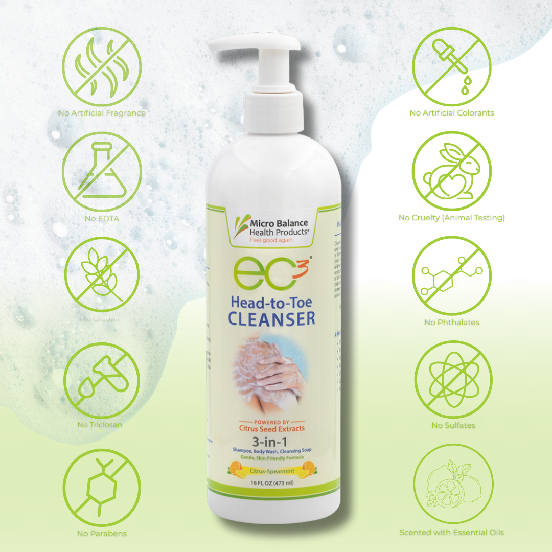 EC3 Head‑to‑Toe Cleanser is a refreshing, multi‑purpose shampoo and body wash formulated for those who want a clean that’s effective yet exceptionally gentle. Powered by a natural botanical blend designed to help rinse away mold, mycotoxins, and environmental contaminants, this cleanser supports a healthier daily routine—especially for individuals navigating mold exposure or chemical sensitivities.